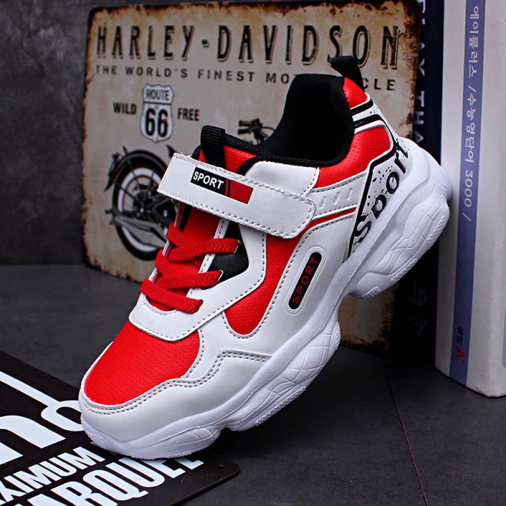 Spring New Leather Surface Velcro Boys Shoes Increase Non-Slip Wear-Resistant Children's Sports Shoes