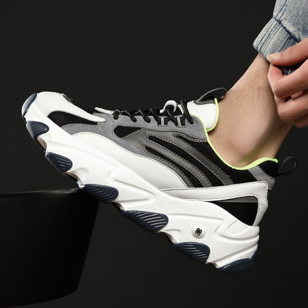 Spring Casual Sports Shoes Men's Fashion Thick-Soled Lace-Up Round Toe