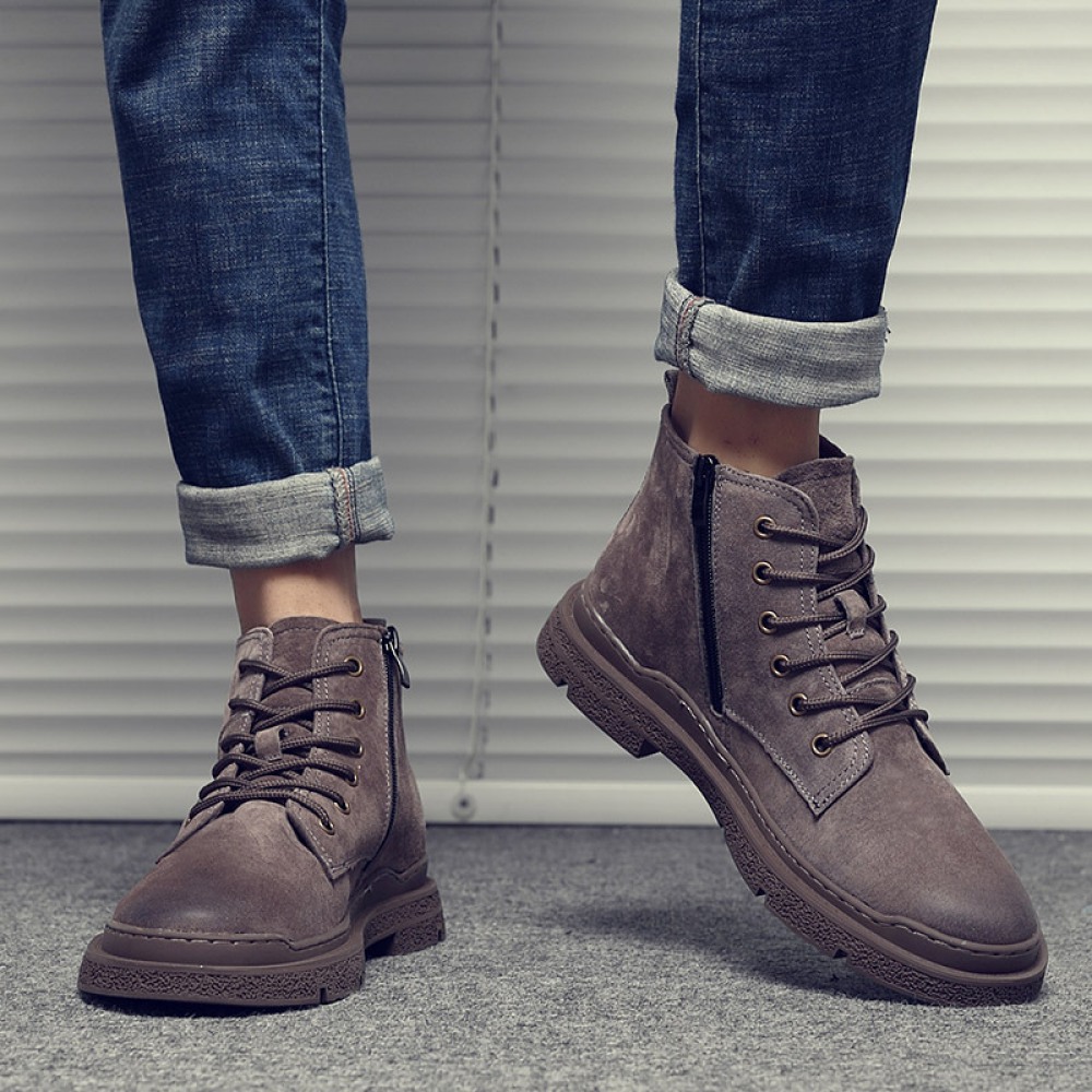 Men's Leather Martin Boots Winter Mens Boots Casual British Tooling Shoes Boots Men