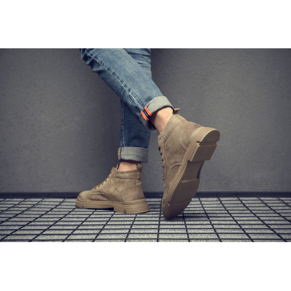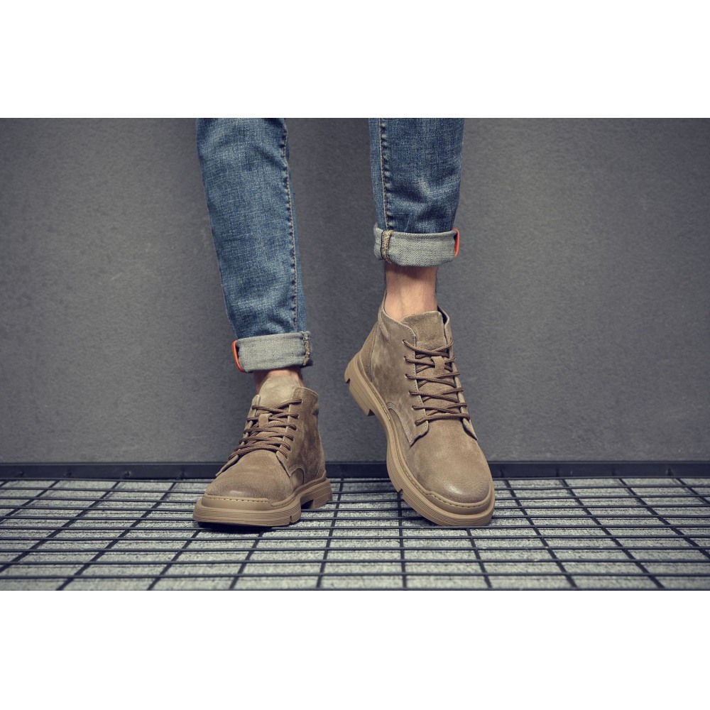 Martin Boots Men's British Style Tooling Boots Mens Autumn Trend High-Top Shoes Casual Breathable Short Boots