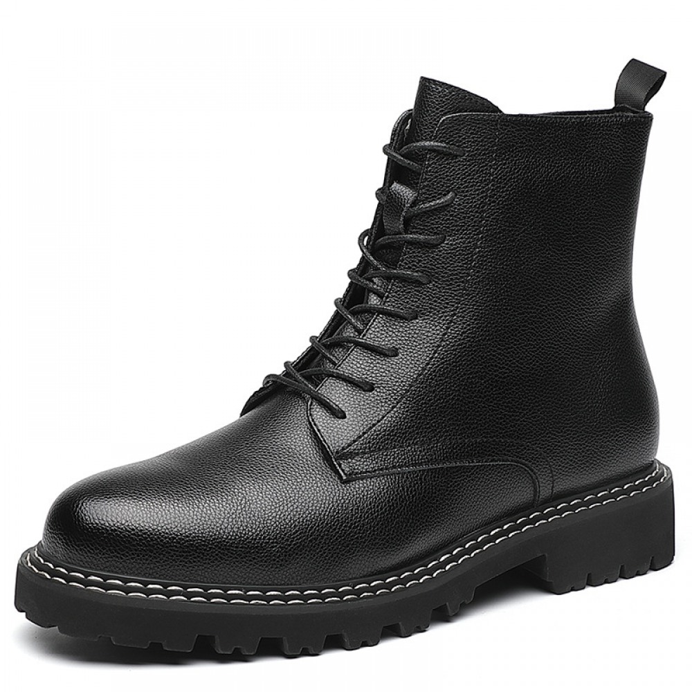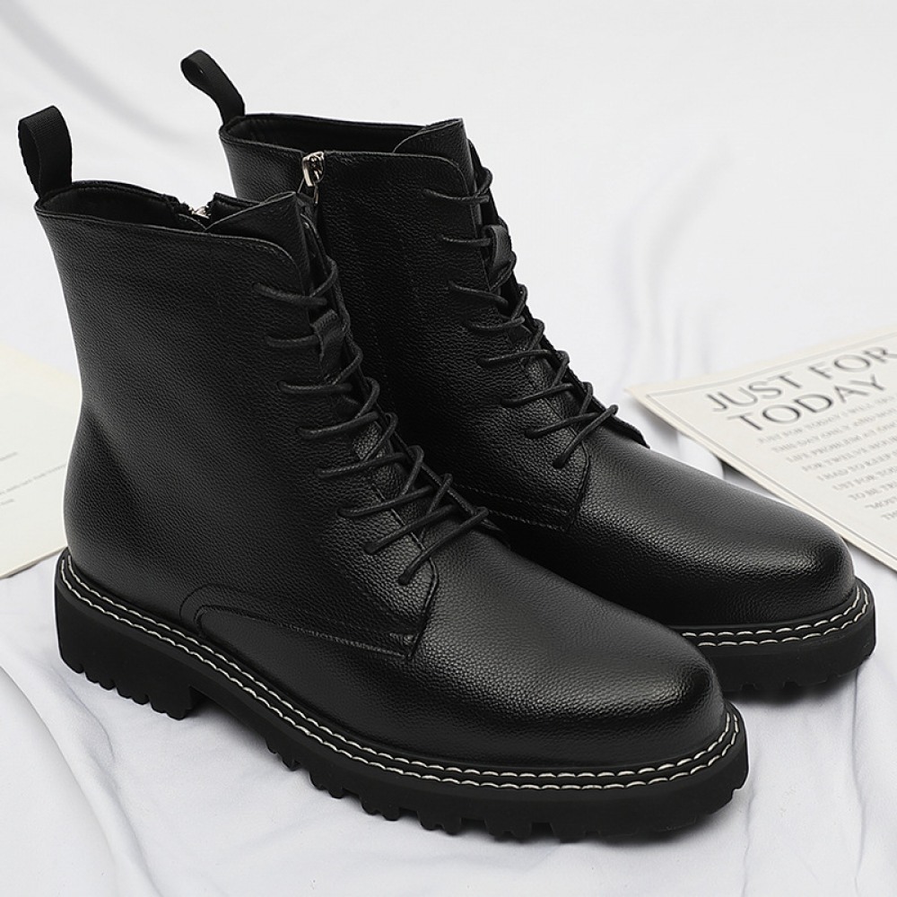 Men's Round Toe British Mens Leather Boots Side Zipper Martin Boots Wear-Resistant Low-Heel Shoes
