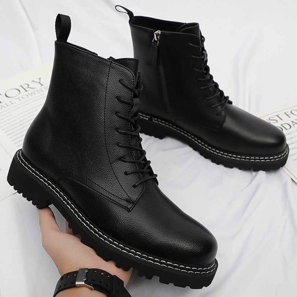 Martin Boots Men's Leather Short Boots Casual Trend Tooling Boots Autumn and Winter High-Top Mens Shoes