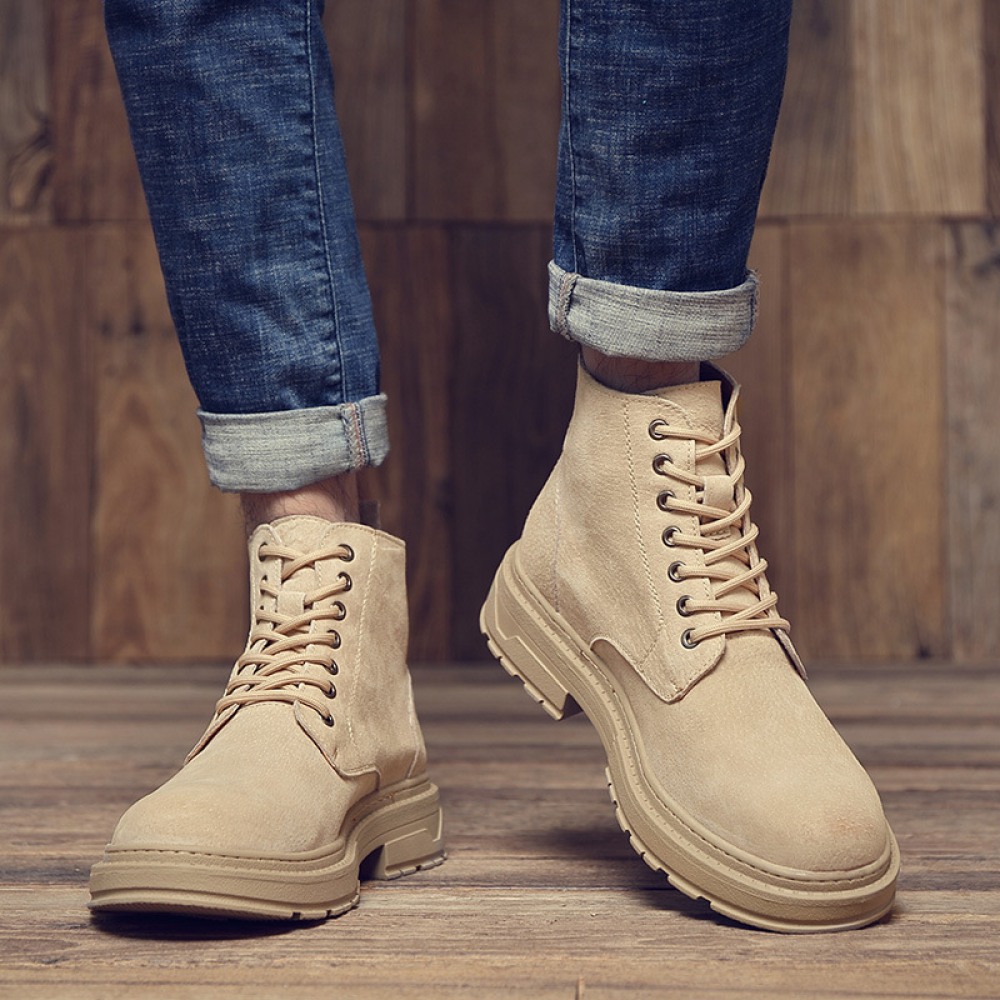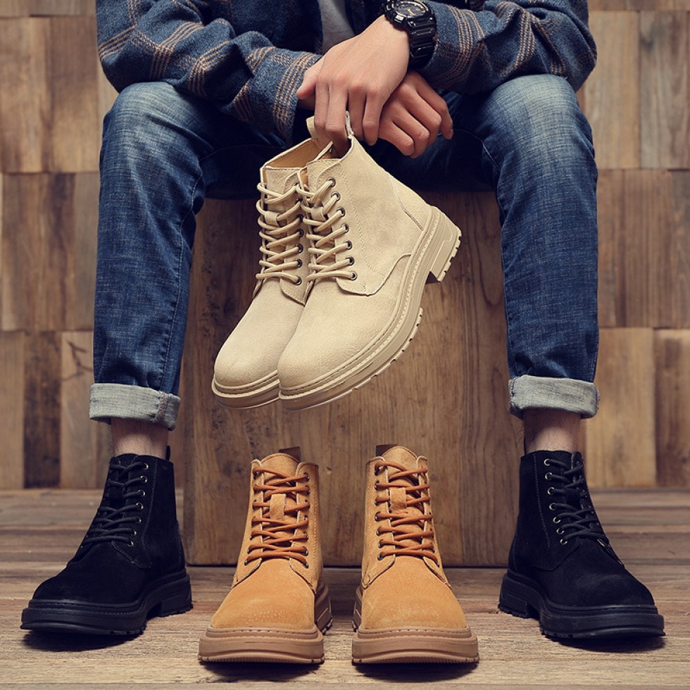 Martin Boots Men's British Style Tooling Boots Mens Autumn Trend High-Top Shoes Casual Breathable Short Boots