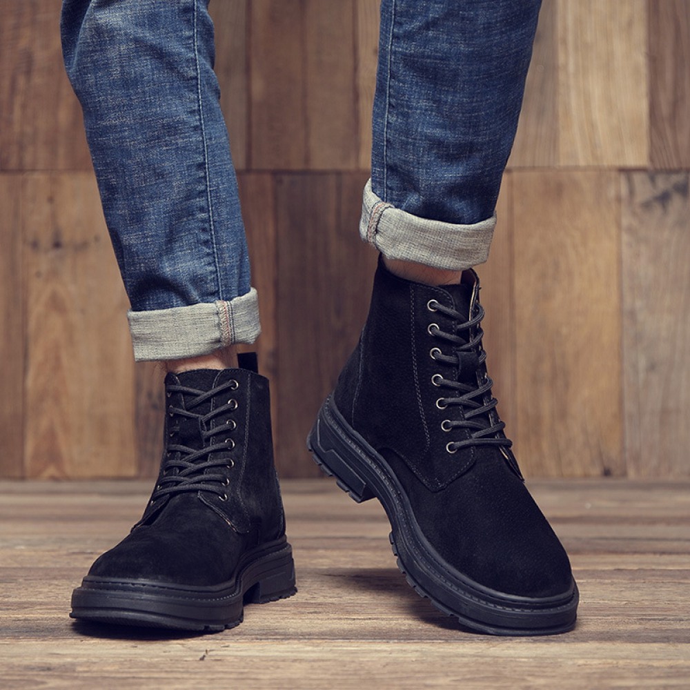 Martin Boots Men's Leather Short Boots Casual Trend Tooling Boots Autumn and Winter High-Top Mens Shoes
