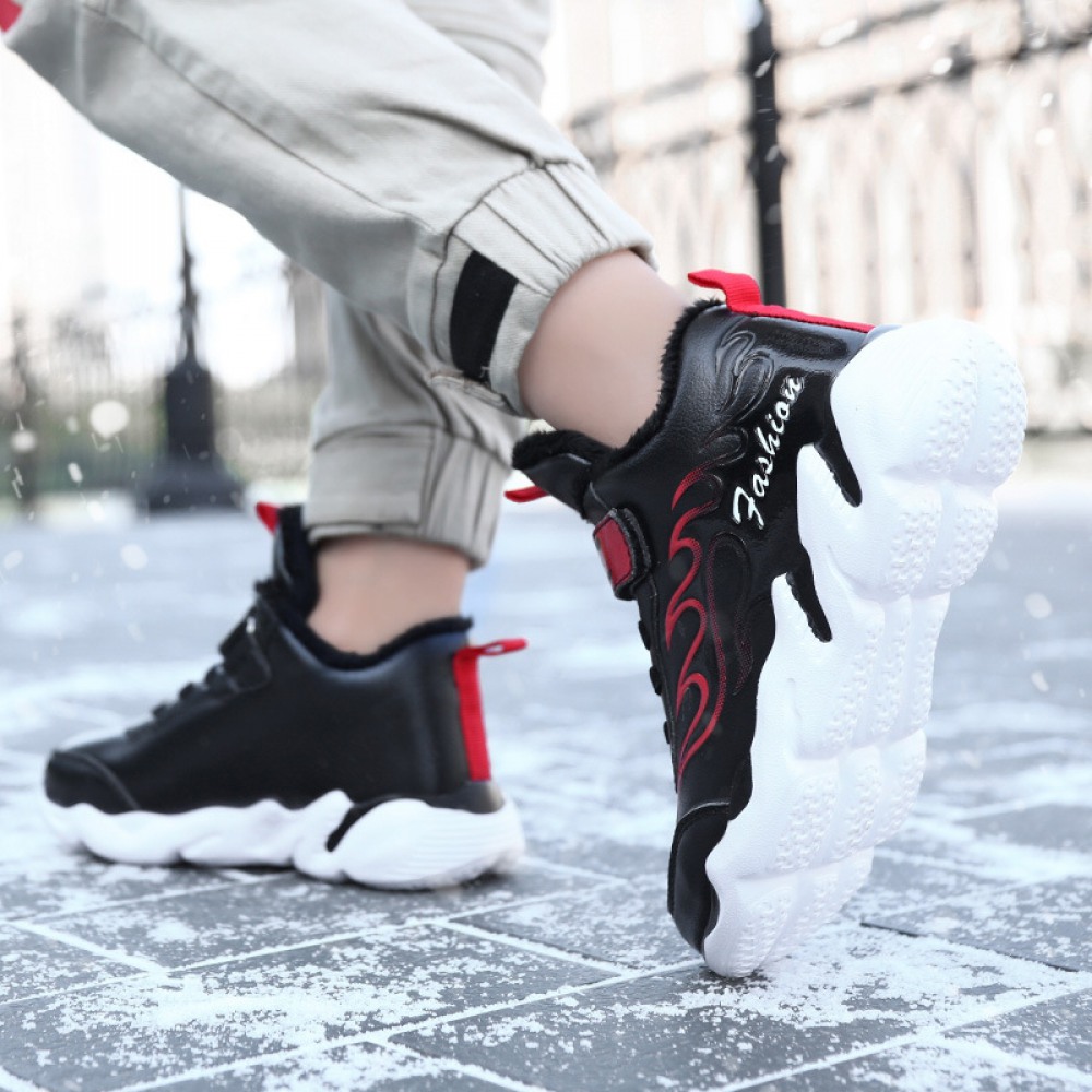 Winter New Boys' Cotton Shoes Children's Big Cotton Shoes Hot Style Plus Wool Warmth Non-Slip Plus Velvet Sneakers